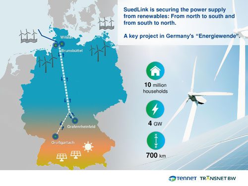 長距離輸電線路的擴(kuò)建被視為德國完成其方針的最大妨礙之一。德國方案到2030年將可再生動力在電力耗費中的份額提高到65%。