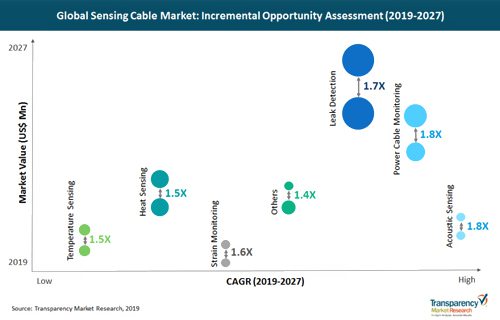 從使用來看,走漏檢測部分將占傳感電纜商場的首要比例。在使用方面,全球傳感電纜商場分為走漏檢測,電力電纜監(jiān)測,熱傳感,溫度傳感,聲學(xué)傳感,應(yīng)變監(jiān)測等。走漏檢測部分領(lǐng)導(dǎo)全球傳感電纜商場,占2018年商場比例的40.26%。該部分估計將在2019年至2027年間以近7%的復(fù)合年添加率擴張。