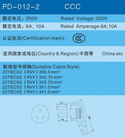 產(chǎn)品名稱:國標(biāo)交流電源線/CCC AC POWER CORDS
